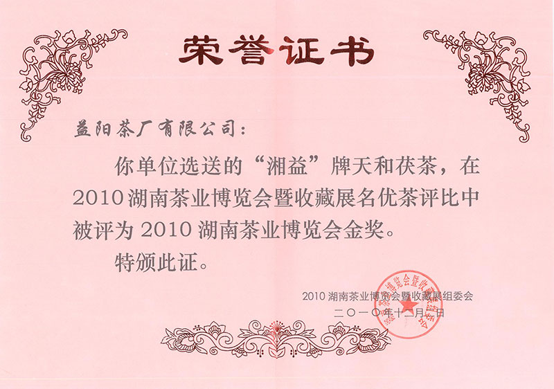 2010年湖南省茶業(yè)博覽會(huì )金獎