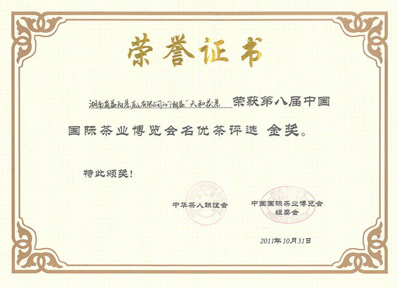 茯茶獲第八屆國際茶博會(huì )金獎(天和)