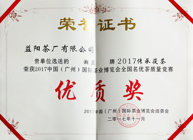 中國(廣州)國際茶葉博覽會(huì )優(yōu)質(zhì)獎