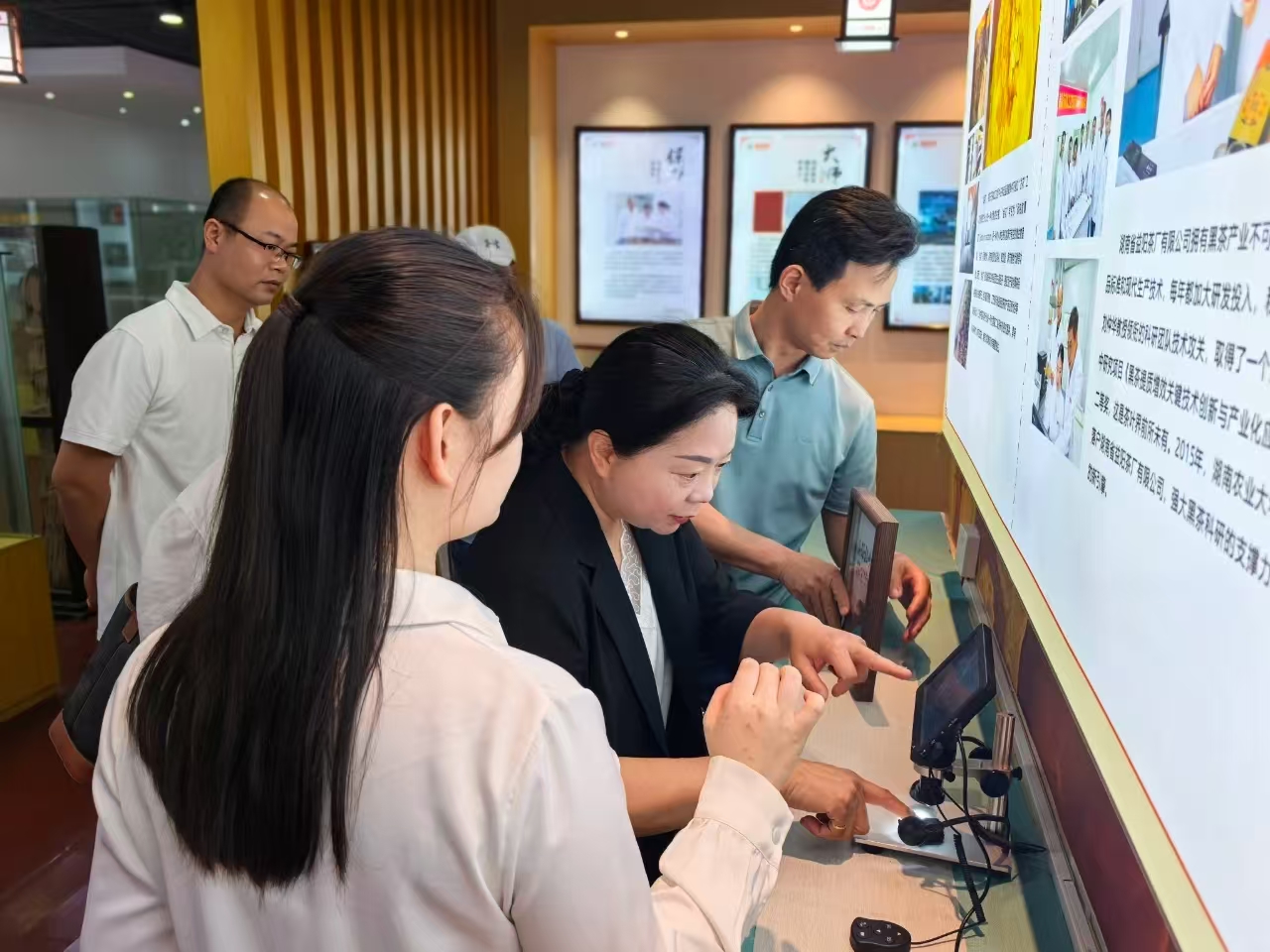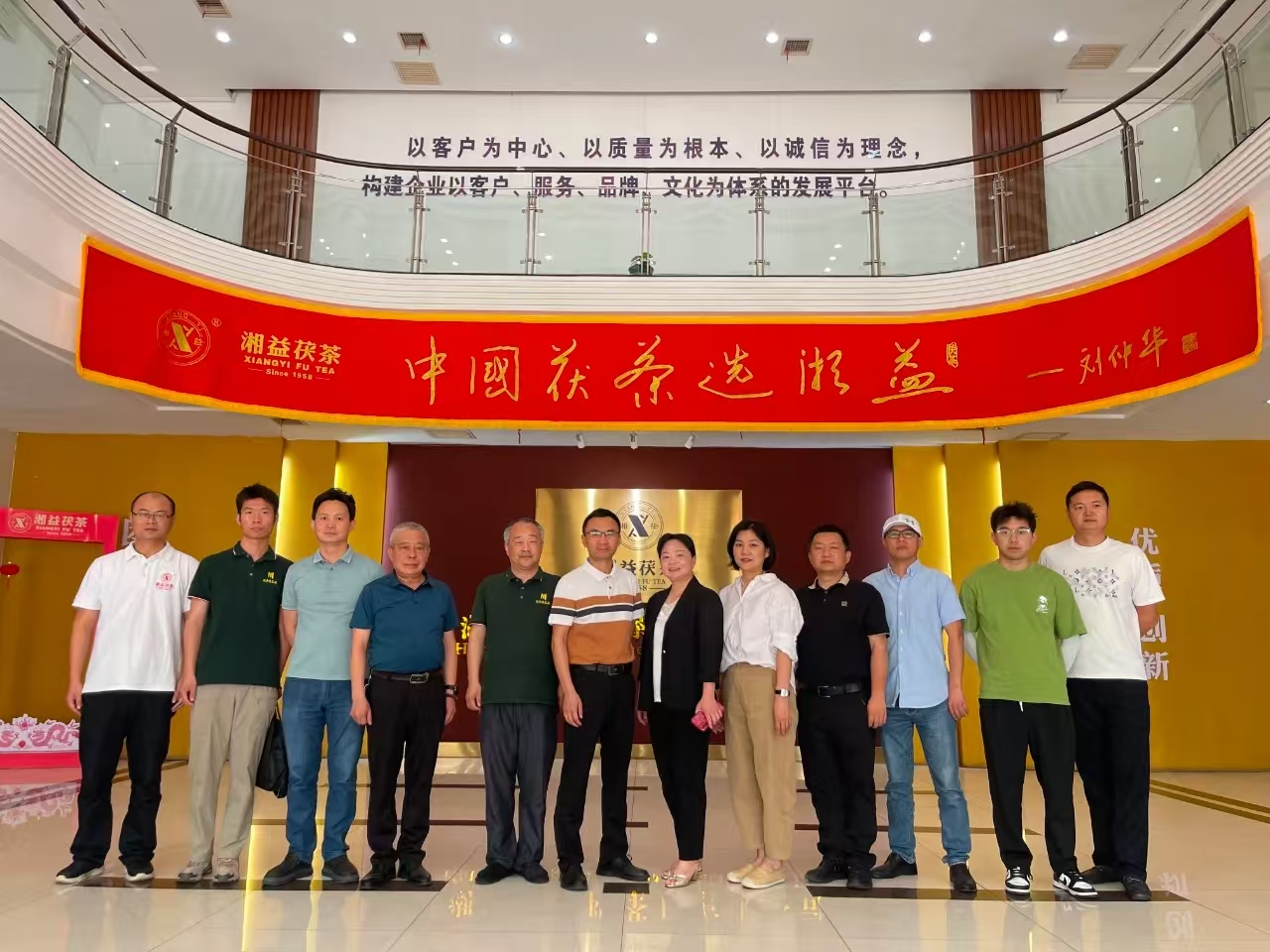 來(lái)訪(fǎng)嘉賓深入生產(chǎn)車(chē)間,實(shí)地參觀(guān)了篩分車(chē)間、壓制車(chē)間與金花酵庫。姚堅主席全程陪同下,并憑借其深厚的行業(yè)知識,深入講解從原料精選到茯磚茶“發(fā)花”等核心工藝要點(diǎn),讓來(lái)賓們對茯磚茶嚴苛的制作工序有了更清晰的認識。在湘益茯茶博物館,來(lái)賓們通過(guò)詳實(shí)的文字、圖片以及歷史實(shí)物,感受茯磚茶制作技藝傳承數百年的深厚底蘊,深入了解益陽(yáng)茶廠(chǎng)六十余載守護非遺技藝的堅守與突破。