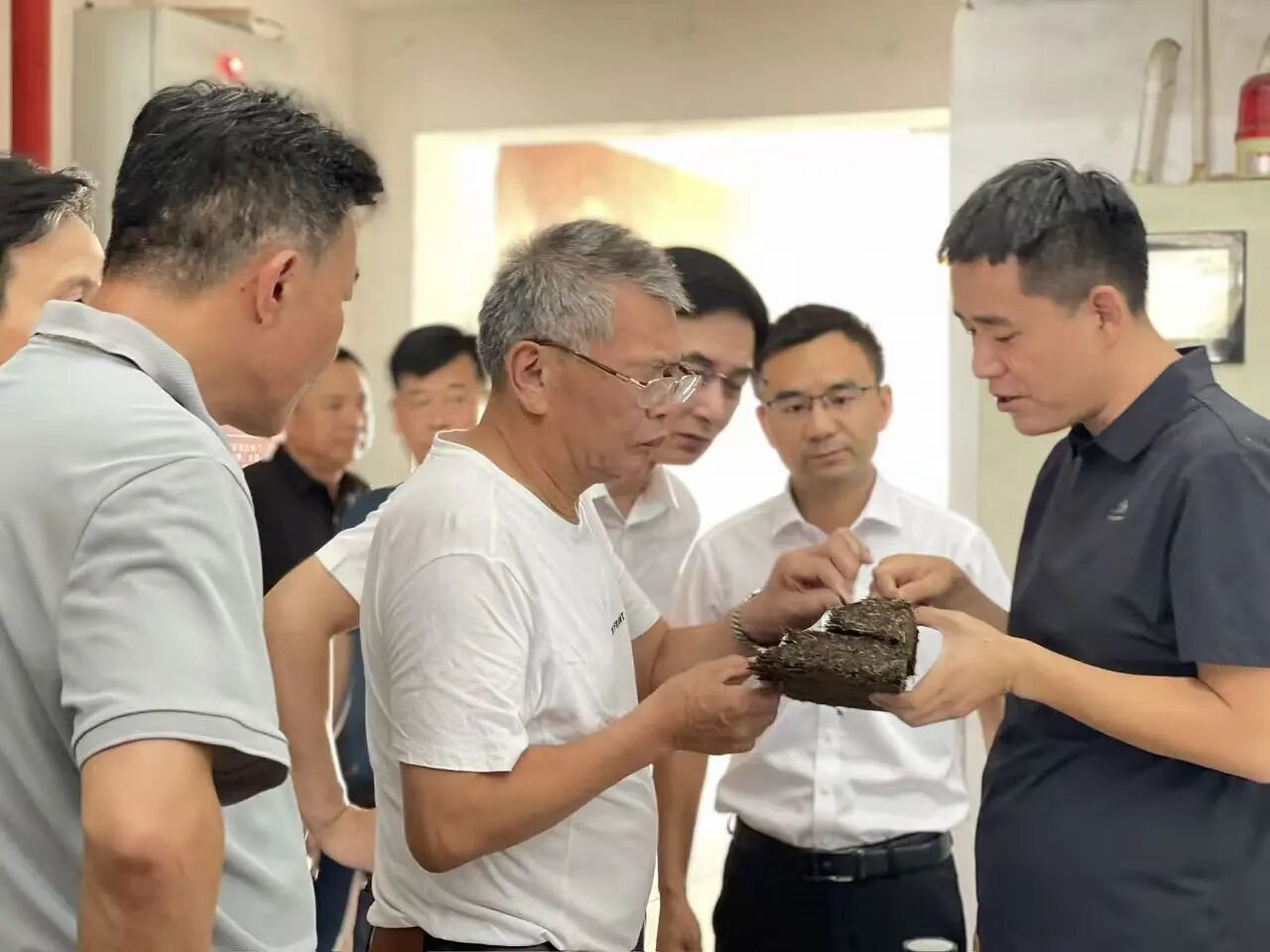 考察團深入參觀(guān)公司篩分車(chē)間、壓制車(chē)間及金花酵庫,詳細了解茯磚茶的傳統制作技藝與現代生產(chǎn)工藝。在隨后舉行的座談會(huì )上,雙方就茶葉產(chǎn)業(yè)發(fā)展、品牌建設以及潛在合作機遇等進(jìn)行了交流。